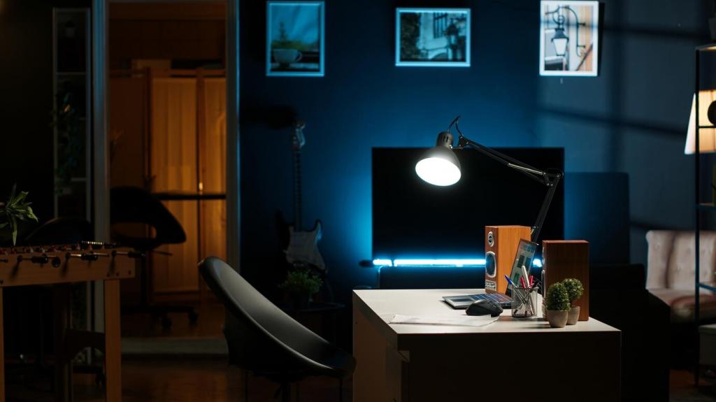 Zarte Fischgratstrukturen, kleine Karos und gebrochene Streifen bringen Leben, ohne zu überfordern. Sie lassen Flächen interessant wirken und bleiben dennoch gelassen. Erzählen Sie uns: Bevorzugen Sie ruhige Mikro-Muster oder dezente Ton-in-Ton-Gewebe für maximale Entspannung?